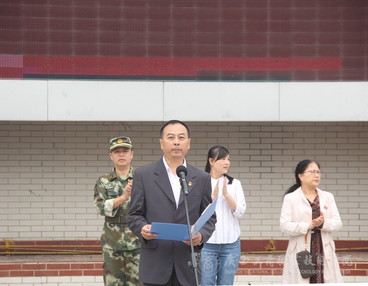 11月6日上午,我院2017級(jí)軍事訓(xùn)練動(dòng)員大會(huì)在校本部LED大屏幕下召開(kāi),學(xué)院黨委副書(shū)記、紀(jì)委書(shū)記蒙啟成和武警廣西總隊(duì)直屬支隊(duì)副大隊(duì)長(zhǎng)閉永勤出席會(huì)議,教務(wù)科研處處長(zhǎng)闕勇平、后勤管理處副處長(zhǎng)梁坤、各系主任、黨總支書(shū)記、學(xué)工副主任、2017級(jí)輔導(dǎo)員、班主任、系教學(xué)秘書(shū)和2017級(jí)全體新生參加本次動(dòng)員大會(huì)。大會(huì)由學(xué)工部副部長(zhǎng)廖顯圖主持。