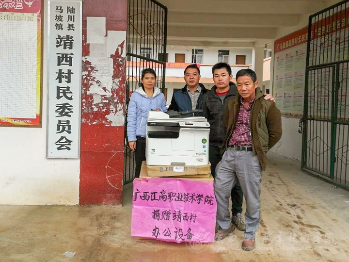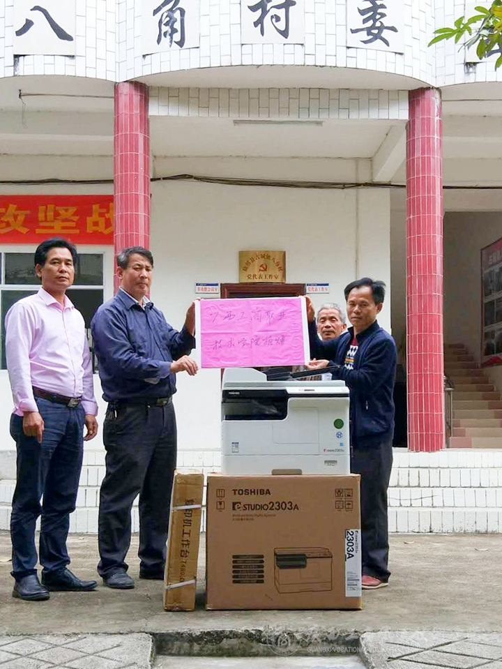 11月上旬,廣西工商職業(yè)技術(shù)學(xué)院將價值9萬多元的多功能復(fù)印機、電腦、打印機、空調(diào)等一批辦公用品分別送至學(xué)院定點幫扶的貧困村陸川縣馬坡鎮(zhèn)靖西村、珊羅鎮(zhèn)四樂村、清湖鎮(zhèn)水亭村、清湖鎮(zhèn)那若村、古城鎮(zhèn)八角村、古城鎮(zhèn)良村村等6個貧困村,并組織人員完成了安裝工作。該批辦公用品由學(xué)院現(xiàn)代教育中心采購。