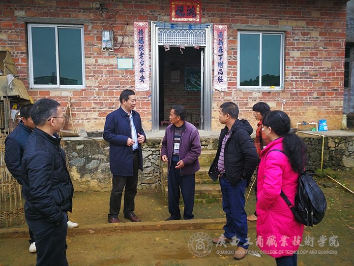??????? 在全國上下深入學習宣傳貫徹黨的十九大精神之際,教務科研處黨支部書記闕勇平、組織委員張鋒雄和財信系黨總支書記林芳及支部委員蘇波,于2017年12月14-15日到陸川縣清湖鎮(zhèn)那若村開展了助力精準扶貧進村入戶幫扶走訪慰問貧困戶和貧困村黨組織第一書記活動。學院副院長李維作為教務科研處黨支部成員也全程參加了活動。