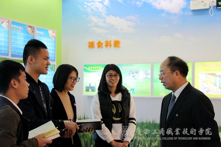 ? ? ? ? 宣講會(huì)結(jié)束后,梁金榮還來(lái)到學(xué)院糧食文化教育基地,就如何深入學(xué)習(xí)宣傳貫徹十九大精神,如何做好高校基層黨組織建設(shè)、糧食安全和青年學(xué)生成才等話題,與師生進(jìn)行互動(dòng)交流,氣氛十分熱烈。