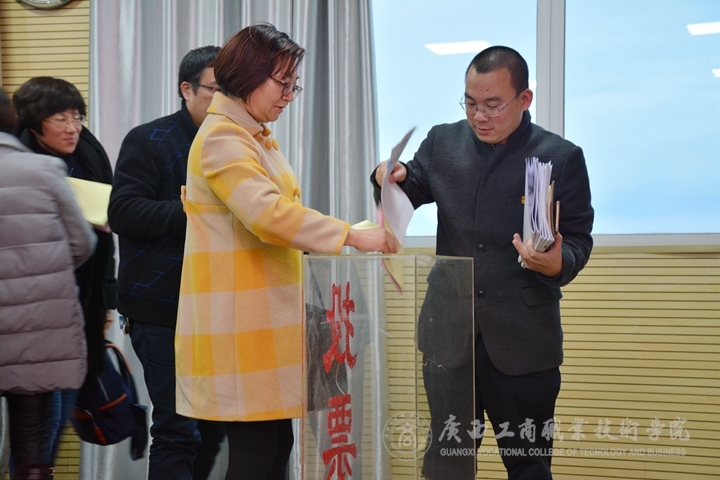 ? ? ? ? 工作述職結(jié)束后,工作人員發(fā)放民主測評表,與會相關(guān)人員不記名投票的方式進(jìn)行民主測評。據(jù)了解,本次民主測評主要是對各部門的工作進(jìn)行考核測評、對學(xué)院中層管理人員進(jìn)行考核測評、并對各部門競爭性推優(yōu)人選進(jìn)行考核推薦。