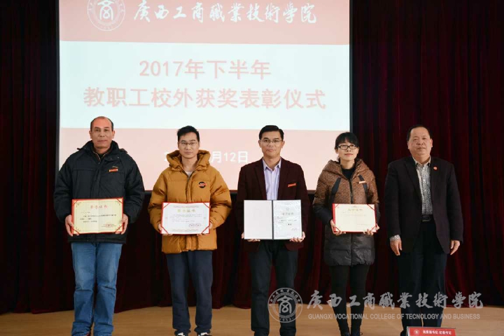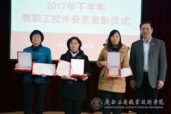 ??????? 會上,蒙啟成首先宣讀了2017年下半年退休人員名單,并由李仕欽和李維為退休人員頒發(fā)榮休證書和榮休紀(jì)念品。接著,蒙啟成對《關(guān)于2017年度學(xué)院教職工榮獲校外集體獎和個人獎項(xiàng)目的情況通報》進(jìn)行宣讀,并對獲獎的教師表示祝賀和肯定。表彰儀式上,由李仕欽,李維,陳寧春分別為獲獎教師代表頒獎。