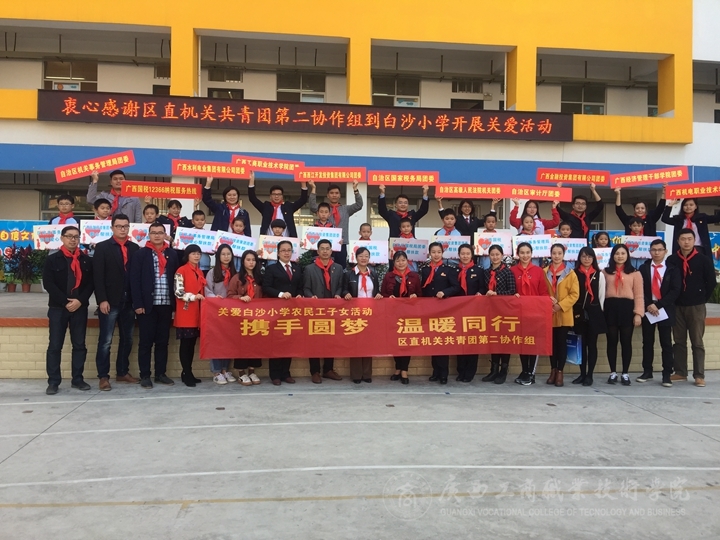 為繼續(xù)發(fā)揚(yáng)“奉獻(xiàn)、友愛、互助、進(jìn)步”的青年志愿者精神,2018年1月19日下午,我院蒙曉旺、歐少亮、仇志清老師參加區(qū)直機(jī)關(guān)共青團(tuán)第二協(xié)作組“攜手圓夢(mèng),溫暖同行”關(guān)愛白沙小學(xué)農(nóng)民工子女活動(dòng),以愛心關(guān)愛貧困農(nóng)民工子弟健康成長,快樂學(xué)習(xí)。
