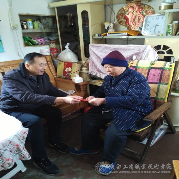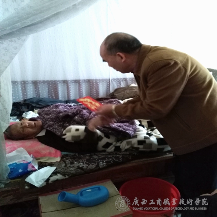 ? ? ? ??學(xué)院黨委書記覃武云、組織部長(zhǎng)蔣百平一行到家看望慰問我院高齡老人梁惠忠、學(xué)院老領(lǐng)導(dǎo)黃永蓬同志。并與老同志及其家人親切交談,感謝老同志長(zhǎng)期以來對(duì)學(xué)院發(fā)展做出的貢獻(xiàn),希望他們今后一如既往地關(guān)注支持學(xué)院事業(yè)發(fā)展,并向他們致以新年祝福。