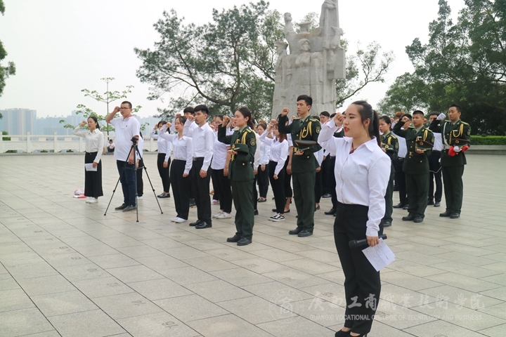 ??????? 隨后,同學們走過紅橋,來到百色起義紀念碑,并于此舉行莊重的祭奠儀式,向英勇抗戰(zhàn)的革命先烈們送上最崇高、最偉大的致敬,以緬懷先烈,銘記歷史。在紀念碑前,同學們重溫入團誓詞,錚錚誓詞響徹云霄,句句初心永生不忘,院學生委員會主席羅小玲同學向全體同學們發(fā)出倡議,倡議同學們要以史為鑒,要學習革命先烈們頑強拼搏的精神,秉承革命先烈遺志,艱苦奮斗、自強不息,用實際行動向革命先烈致敬。