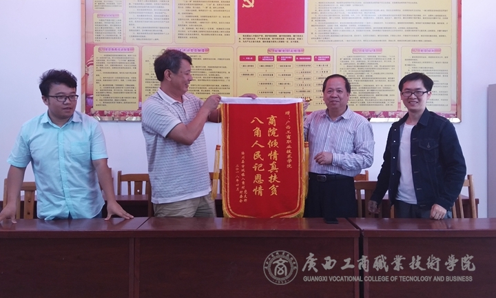 ? ? ? ? 八角村黨總支李書記眼含淚水代表全體村民為學院送上“商院傾情真扶貧、八角人民記恩情”錦旗,“感謝廣商院黨委、感謝廣商院的全體教職員工”.