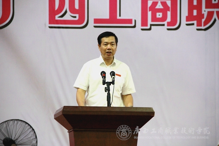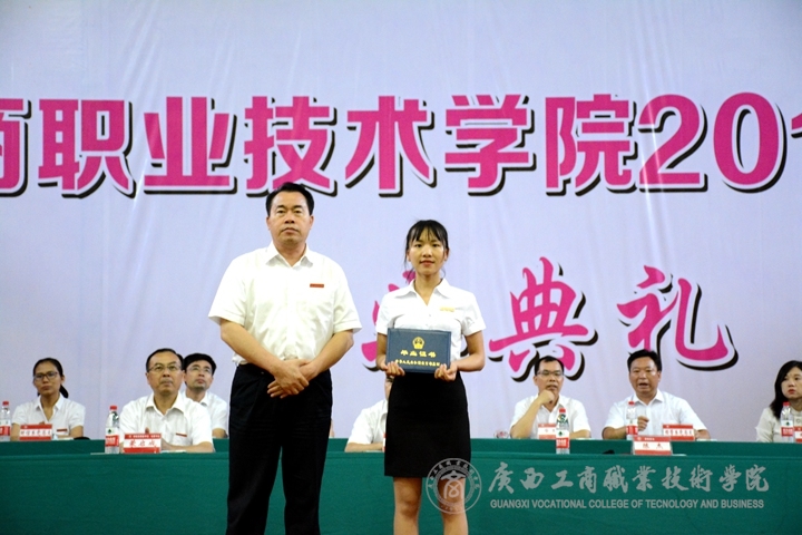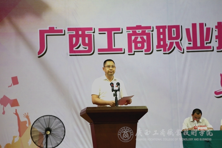 ??????? 2018年6月23日下午,廣西工商職業(yè)技術(shù)學(xué)院在鵬飛校區(qū)文體館二樓舉辦2018屆畢業(yè)典禮。出席畢業(yè)典禮的有學(xué)院領(lǐng)導(dǎo)黨委書記覃武云、院長陳杰、黨委副書記、紀(jì)委書記蒙啟成、副院長李仕欽、副院長李維、副院長陳寧春以及各部門負(fù)責(zé)人,參加畢業(yè)典禮的有畢業(yè)班的班主任、輔導(dǎo)員以及全體畢業(yè)班學(xué)生。畢業(yè)典禮由副院長陳寧春主持。