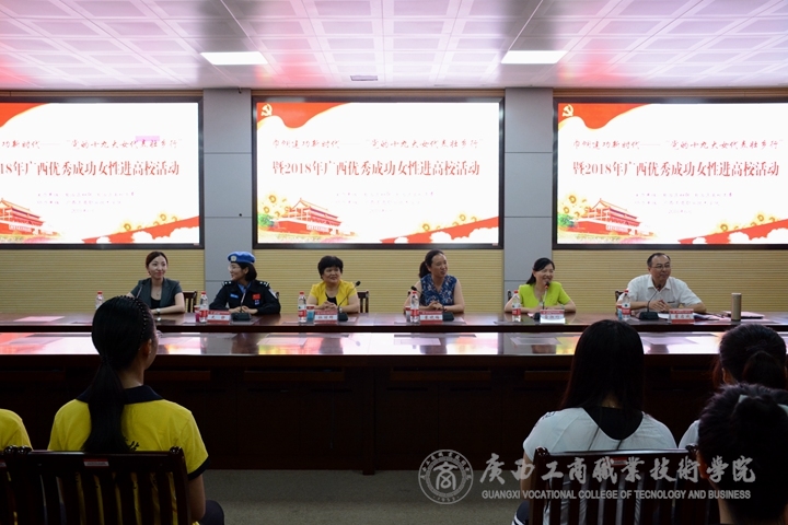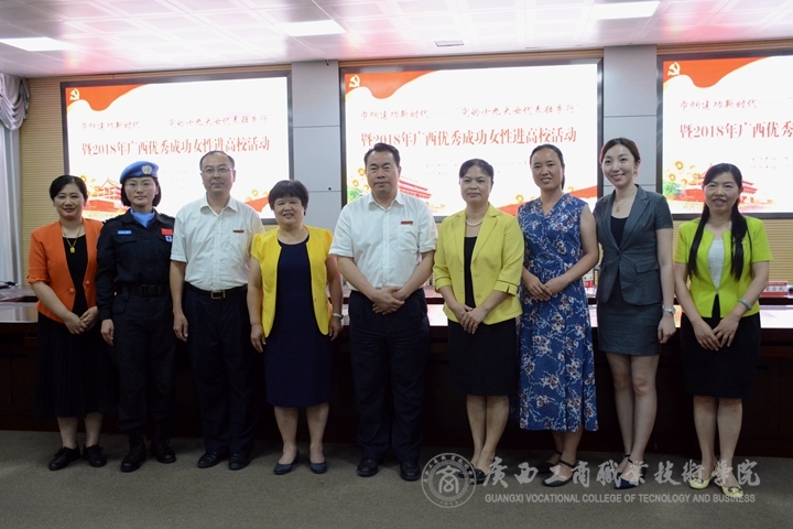 ??????? 據(jù)了解,本次活動(dòng)一共邀請(qǐng)到了教師、軍人、企業(yè)家等五位優(yōu)秀成功女性代表參加,她們分別是:南寧市第四人民醫(yī)院艾滋病科護(hù)士長(zhǎng)、黨的十九大代表、全國(guó)三八紅旗手標(biāo)兵杜麗群;來賓市忻城縣北更鄉(xiāng)中心小學(xué)高級(jí)教師、黨的十九大代表、全國(guó)三八紅旗手蒙曉梅;中國(guó)第五支赴利比里亞維和警察防爆隊(duì)指揮中心執(zhí)勤官、廣西公安邊防總隊(duì)北海機(jī)場(chǎng)邊防檢查站情報(bào)法制科正連職參謀、廣西三八紅旗手史靜;廣西民族大學(xué)教育科學(xué)學(xué)院副院長(zhǎng)雷湘竹教授以及桂林萬卓電子科技有限公司創(chuàng)始人肖月。