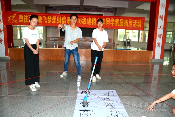? ? ? ? 本次活動(dòng)包括團(tuán)隊(duì)建設(shè)、挑戰(zhàn)150、書寫校訓(xùn)三個(gè)項(xiàng)目的活動(dòng)。通過破冰游戲打破人與人之間的隔膜,創(chuàng)造良好的溝通氛圍,從而進(jìn)行團(tuán)隊(duì)建設(shè),在團(tuán)隊(duì)協(xié)作完成各項(xiàng)活動(dòng)的過程中,同學(xué)們深刻領(lǐng)會(huì)到團(tuán)隊(duì)合作的重要性。也有效提高了他們的膽量、勇氣、領(lǐng)導(dǎo)、組織、團(tuán)隊(duì)合作和有效溝通等方面的素質(zhì)和能力,也將助力他們實(shí)現(xiàn)自己的夢(mèng)想。