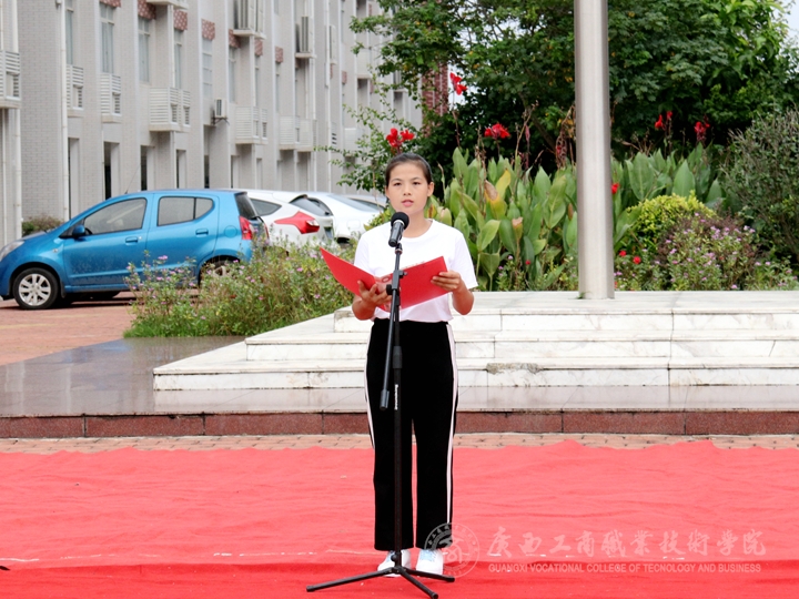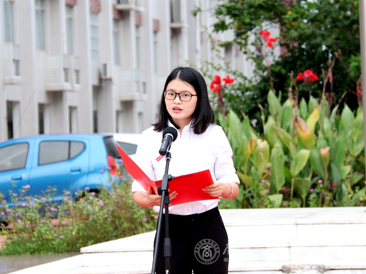 升旗儀式由學(xué)院領(lǐng)導(dǎo)副院長(zhǎng)陳寧春主持,學(xué)院黨委書記覃武云在國(guó)旗下發(fā)表新學(xué)期開學(xué)講話。