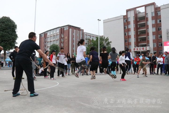 賽場(chǎng)上,老師們一掃平日嚴(yán)肅安靜的模樣,放松心情,盡情比賽。各比賽隊(duì)伍的老師相互協(xié)調(diào)共同合作,有條不紊,他們齊心合力的喊著“一二三一二三”的口號(hào)。引得賽場(chǎng)上的觀眾呼聲陣陣,繩子兩頭的老師也跟著他們的步伐甩動(dòng)著手臂。那一個(gè)個(gè)騰空跳躍的身影,給校園里增添了一道靚麗的風(fēng)景線。比賽最后,財(cái)信系代表對(duì)以88次數(shù)最高分脫穎而出贏得第一。