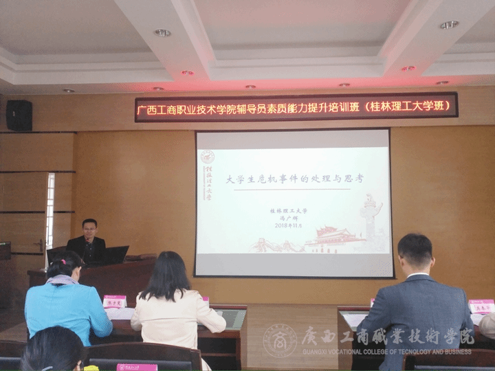 上午九點(diǎn),桂林理工大學(xué)學(xué)工部副部長(zhǎng)馮廣輝作關(guān)于“危機(jī)事件處理”的專題講座。馮部長(zhǎng)深入淺出地講解危機(jī)事件的概念、類型及特征,期間穿插了大量生動(dòng)詳實(shí)的危機(jī)事件典型案例,通過(guò)案例分析,得出一套明晰的、完整的、可操作性強(qiáng)的危機(jī)事件處理方法與策略,并且針對(duì)危機(jī)事件處理,給輔導(dǎo)員提了四點(diǎn)建議,附送了三個(gè)“錦囊妙計(jì)”。學(xué)員紛紛表示聽(tīng)了馮部長(zhǎng)的講座,獲益匪淺,既增長(zhǎng)了見(jiàn)識(shí),又打開(kāi)了思路,對(duì)今后處理危機(jī)事件更有信心了。