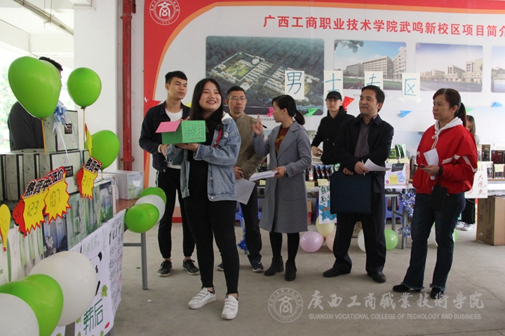 學(xué)院經(jīng)管系派出專業(yè)老師作為大賽評委,分別在各個營銷攤位前了解學(xué)生銷售的產(chǎn)品并進行打分。