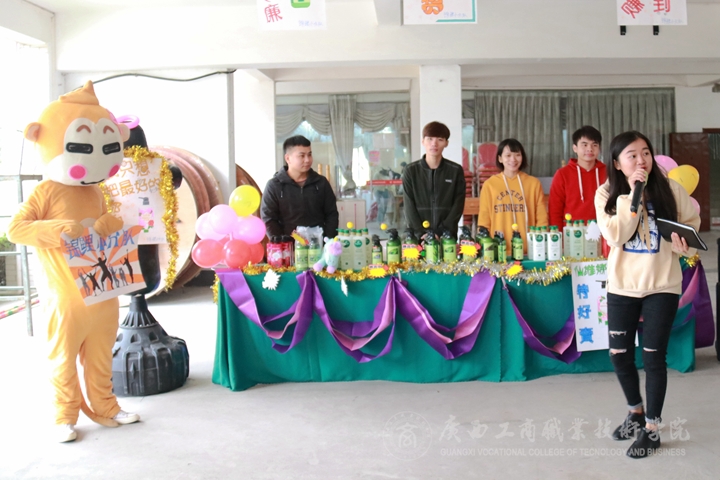 營銷大賽上,各種各樣的商品琳瑯滿目,讓人應(yīng)接不暇。參賽小組的選手們不僅按照要求精心擺放了各自銷售的商品,還通過引人注目的宣傳海報、別具一格的攤位裝飾、精彩的銷售講解來吸引大家的目光。參賽選手們發(fā)揮自己的知識和能力,生動地介紹自己所銷售的產(chǎn)品存在的特點和作用。除此之外,參賽小組們還通過將賣出商品的部分錢財用來募捐、買商品即可獲得抽獎機會、現(xiàn)場表演節(jié)目等方式來促進商品的銷售,熱熱鬧鬧的大賽現(xiàn)場匯聚了眾多的老師、同學(xué)們。大賽結(jié)束后,同學(xué)們都自覺把場地清掃干凈,方才陸續(xù)離開。