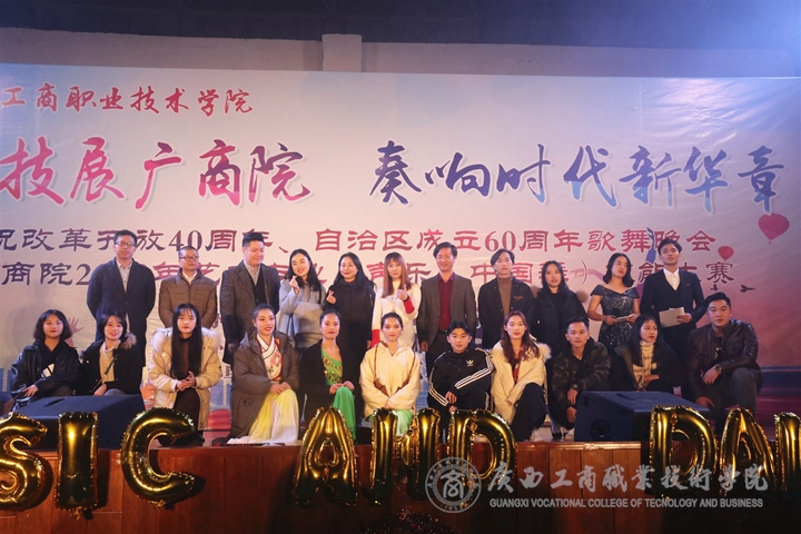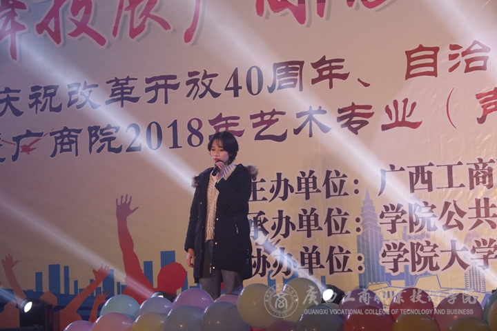 近日,我院在鵬飛校區(qū)文體館二樓舉辦了 “歌舞技展廣商院,奏響時代新華章”慶祝改革開放40周年、自治區(qū)成立60周年歌舞晚會暨廣商院2018年藝術專業(yè)技能大賽,本次比賽由學院公共基礎部承辦,學院大學生藝術團協辦。比賽邀請了廣西大學田昀艷副教授、廣西藝術學院白玲老師和胡郢老師、中國好聲音廣西賽區(qū)評委韋艷艷老師、廣西城市職業(yè)學院客座教授呂榮林老師擔任評委,學院部分教師代表、學生代表也觀看了本次比賽。