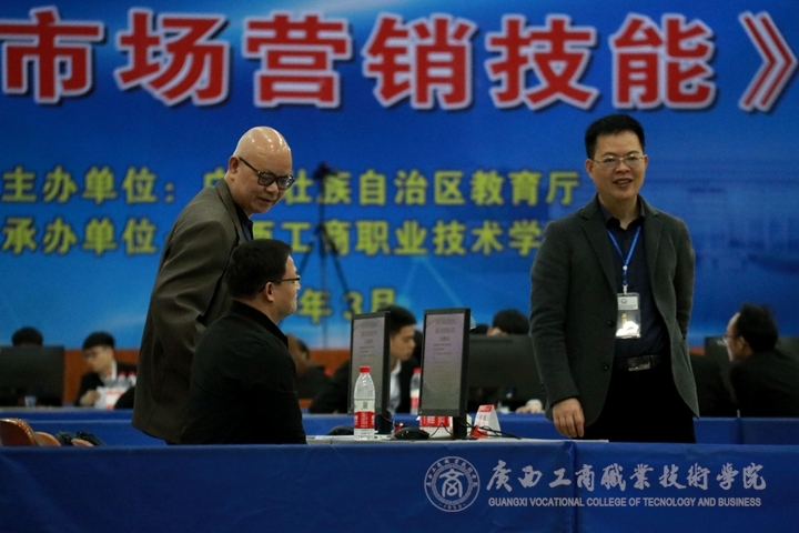 ?????? 3月23日下午,2019年廣西職業(yè)院校技能大賽高職組“市場營銷技能”賽項于我院鵬飛校區(qū)文體館二樓如火如荼地進行著。來自全區(qū)高校的30支參賽隊伍正在展開激烈角逐。