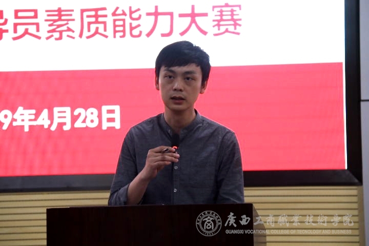 ? ? ? ? 為了推動(dòng)我院輔導(dǎo)員隊(duì)伍職業(yè)化、專(zhuān)業(yè)化發(fā)展,提升輔導(dǎo)員職業(yè)能力以及工作的科學(xué)化學(xué)水平, 4月28號(hào)下午15:00,我院于鵬飛校區(qū)教學(xué)樓視頻會(huì)議室舉辦2019年輔導(dǎo)員素質(zhì)能力大賽。參賽選手要求在崗并專(zhuān)職從事輔導(dǎo)員工作2年以上,本次比賽共有13名輔導(dǎo)員參加。比賽邀請(qǐng)了廣西大學(xué)團(tuán)委宣傳部陳霄老師、廣西幼兒師范高等學(xué)校團(tuán)委書(shū)記、學(xué)生工作處副處長(zhǎng)戴世琴、南寧職業(yè)技術(shù)學(xué)院學(xué)生黨支部書(shū)記黃小釗三人擔(dān)任評(píng)委,黨委學(xué)生工作部副部長(zhǎng)林雯、各系黨總支書(shū)記、副書(shū)記及相關(guān)人員40余人到場(chǎng)觀看比賽。