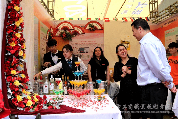 ? ? ? ? 5月8日上午,活動正式開始。開幕式表演與專業(yè)展演同時進行,107所參展學校展演的內容各有特色,我院糧油儲存與檢測技術專業(yè)展示的是五谷雜糧產品包裝設計,酒店管理專業(yè)展演了插花擺盤、調酒等專業(yè)知識和技能。我院展位布置十分精心,插花擺盤效果令人驚艷,現(xiàn)場調試的酒水和糕點美味可口,可供大家免費品嘗,駐足拍照觀賞的人絡繹不絕。李維副院長現(xiàn)場向參觀嘉賓及其他院校老師介紹本次展演的產品文化特色,其余師生也熱情宣傳我院職業(yè)教育成果,展示出我院學生良好的精神風貌。