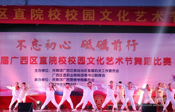 ??????? 2019年5月25日,學(xué)院大學(xué)生藝術(shù)團(tuán)舞蹈隊(duì)前往廣西警察學(xué)院參加2019年“不忘初心 砥礪前行”第七屆廣西區(qū)直院校校園文化藝術(shù)節(jié)舞蹈比賽,學(xué)院大學(xué)生藝術(shù)團(tuán)舞蹈隊(duì)表演的舞蹈《龍魂》在眾多強(qiáng)隊(duì)中脫穎而出,榮獲了高職組一等獎(jiǎng)的好成績(jī)。