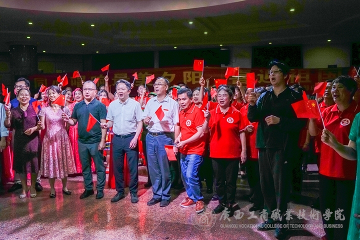 ? ? ? ? 6月5日下午,我院工會(huì)聯(lián)合廣西經(jīng)貿(mào)職業(yè)技術(shù)學(xué)院、廣西國際商務(wù)職業(yè)技術(shù)學(xué)院、廣西衛(wèi)生職業(yè)技術(shù)學(xué)院三所院校工會(huì)在南寧市老干部中心共同舉辦“同心唱響最美夕陽,喜迎祖國70華誕”離退休老同志聯(lián)歡活動(dòng)。4所院校的領(lǐng)導(dǎo)和離退休老同志代表共120多人一起聯(lián)歡。學(xué)院黨委副書記蒙啟成出席活動(dòng)。