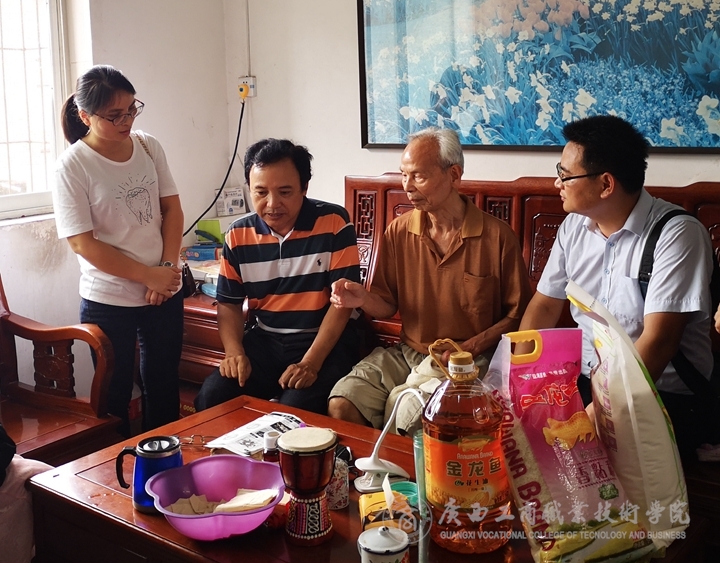? ? ? ? 為貫徹落實(shí)《中共廣西工商職業(yè)技術(shù)學(xué)院委員會(huì)關(guān)于印發(fā)< 中共廣西工商職業(yè)技術(shù)學(xué)院委員會(huì)慶祝建黨98周年系列活動(dòng)工作方案>的通知》(廣商院黨〔2019〕9號(hào))文件精神,繼續(xù)教育部黨支部抓好在職黨員到社區(qū)為群眾服務(wù)工作,持續(xù)開展黨內(nèi)關(guān)愛幫扶,深入聯(lián)系社區(qū)開展“雙報(bào)到”服務(wù)活動(dòng)。在“七一”前夕,為關(guān)懷社區(qū)生活困難的老黨員,繼續(xù)教育部黨支部與永和社區(qū)黨總支,帶著黨和政府的關(guān)懷與溫暖,到困難老黨員蘇其中、黃沛云同志家進(jìn)行走訪慰問活動(dòng),以實(shí)際行動(dòng)傳遞濃濃愛心。