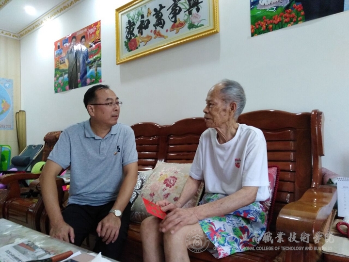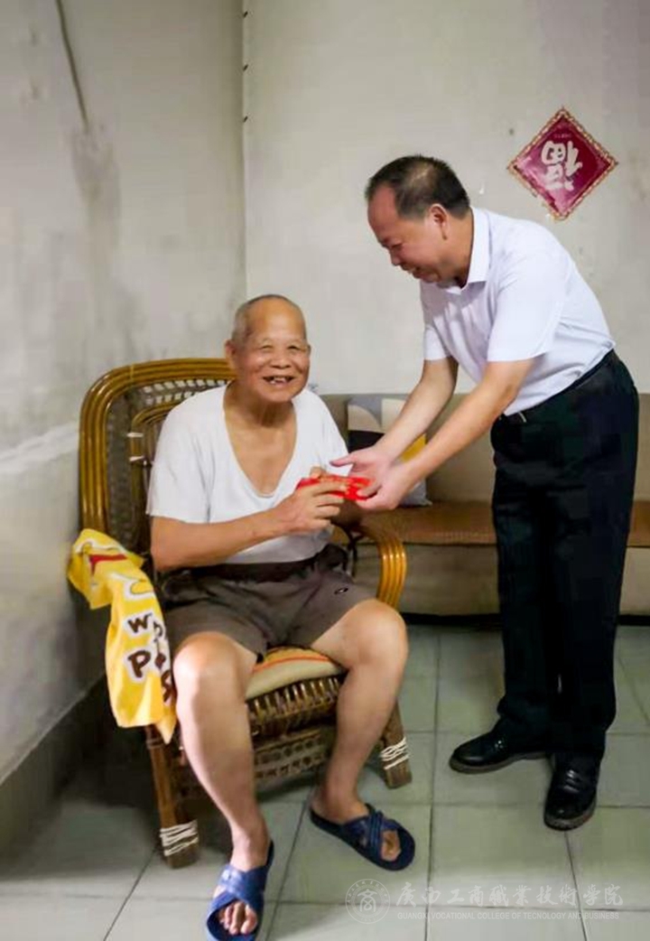 ?????? 在離退休老同志覃澤光的家里 ,我院黨委書(shū)記覃武云握著他的手,感謝他為學(xué)院發(fā)展做出的突出貢獻(xiàn),并囑咐覃澤光老同志的家人照顧好老人的日常起居。在文九齡老同志家,李維院長(zhǎng)希望他能保重身體,繼續(xù)為學(xué)院發(fā)展建言獻(xiàn)策。