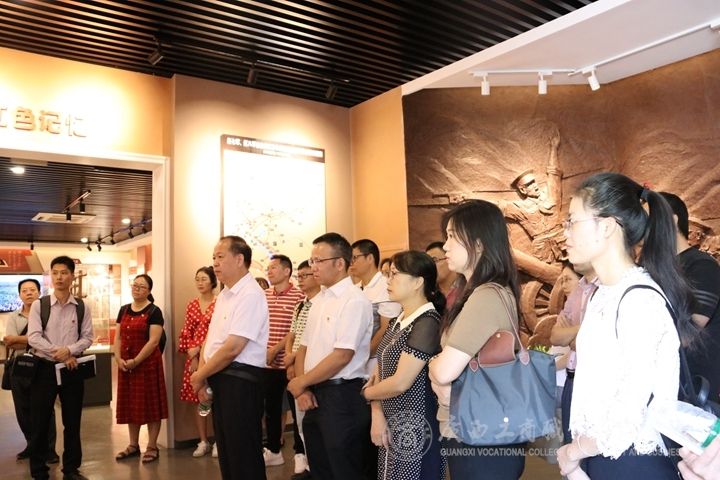 ??????? 9月27日上午,為開(kāi)展好“不忘初心、牢記使命”主題教育,中共廣西工商職業(yè)技術(shù)學(xué)院委員會(huì)組織學(xué)院黨員干部前往廣西壯族自治區(qū)愛(ài)國(guó)主義教育基地——李明瑞、韋拔群烈士紀(jì)念館(南寧市青秀區(qū)南湖公園)進(jìn)行現(xiàn)場(chǎng)教學(xué)。學(xué)院副院長(zhǎng)李仕欽,學(xué)院各部門(mén)、各單位的主要負(fù)責(zé)人和學(xué)院工會(huì)、團(tuán)委主要負(fù)責(zé)人參加本次活動(dòng)。廣西壯族自治區(qū)黨委黨校(廣西行政學(xué)院)黨史黨建教研副教授、法學(xué)博士張忠友為活動(dòng)進(jìn)行講解。
