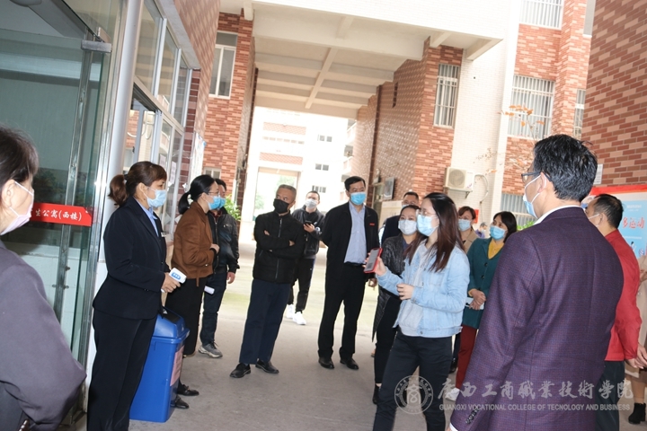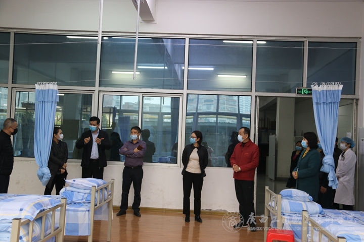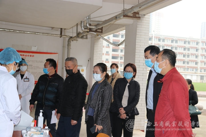匯報(bào)會結(jié)束后,評估組在李維院長、蒙啟成副書記、安仲文副院長、陳寧春副院長及有關(guān)工作人員的陪同下,分別實(shí)地檢查了我院的教室、學(xué)生宿舍、醫(yī)務(wù)室、隔離室、留觀室、防疫物資儲備室、宣傳欄、食堂等場所的開學(xué)準(zhǔn)備工作情況,現(xiàn)場查看了師生返校演練過程,并查閱了有關(guān)臺賬,對負(fù)責(zé)具體工作的相關(guān)工作人員進(jìn)行了詳細(xì)的問詢和具體的工作指導(dǎo)。