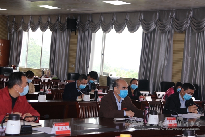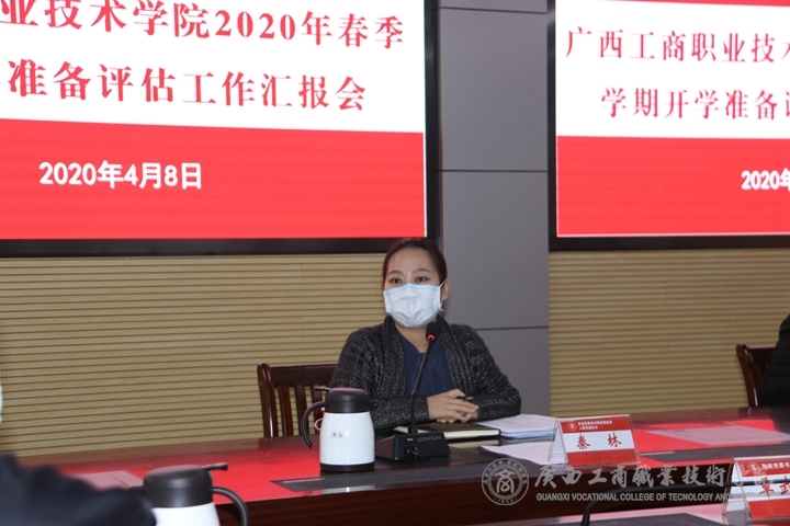 2020年4月8日上午,學(xué)院召開2020年春季學(xué)期開學(xué)準(zhǔn)備評估工作匯報(bào)會和反饋會,自治區(qū)直屬高校開學(xué)評估工作第十五組組長、自治區(qū)糧食和物資儲備局人事處副處長秦林,評估組成員、廣西質(zhì)量技術(shù)工程學(xué)校副校長陳正剛和環(huán)境衛(wèi)生與地方病防制所主任醫(yī)師黃林蒞臨我院開展開學(xué)準(zhǔn)備評估工作。我院全體學(xué)院領(lǐng)導(dǎo)和開學(xué)工作組負(fù)責(zé)人、部分成員參加了會議。
