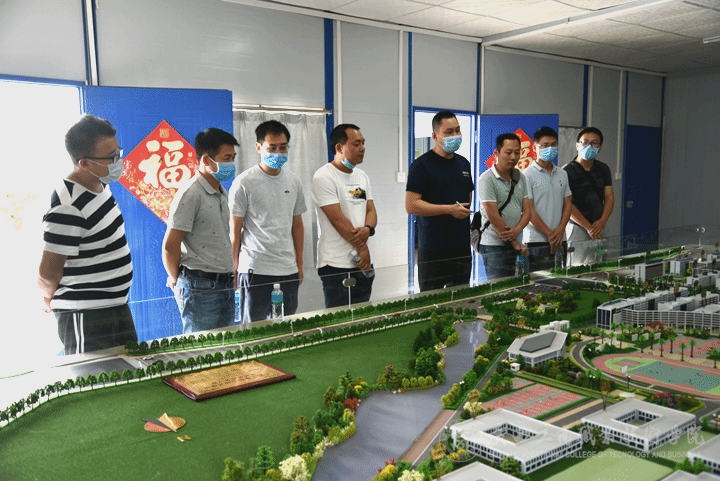 會(huì)前,學(xué)院副院長(zhǎng)陳寧春帶領(lǐng)脫貧攻堅(jiān)(鄉(xiāng)村振興)工作隊(duì)員參觀了武鳴校區(qū)實(shí)景沙盤,并向大家介紹了武鳴校區(qū)的建設(shè)規(guī)模、基本規(guī)劃等。隨后,覃武云一行參觀了解武鳴校區(qū)的建設(shè)情況。