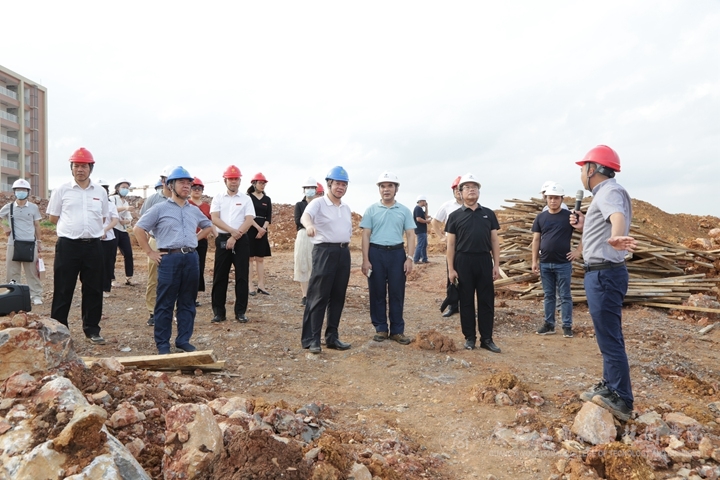 會議最后,全體參會人員在學(xué)院后勤管理處副處長、武鳴校區(qū)建設(shè)辦公室主任廖顯圖同志的引導(dǎo)下參觀武鳴校區(qū)建設(shè)現(xiàn)場并合影留念。