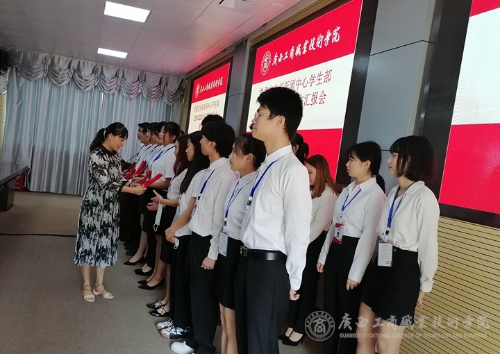 會上,覃遠霞部長為2019-2020年“優(yōu)秀文化貢獻者”頒發(fā)證書,莫惘、馮艷瓊為2019-2020年“優(yōu)秀記者”頒發(fā)證書,馮艷瓊、曹情為18級會干頒發(fā)聘書。