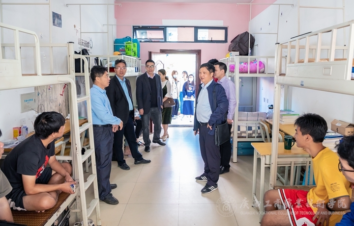 為學(xué)習(xí)兄弟院校在學(xué)生宿舍管理工作、衛(wèi)生管理以及文化建設(shè)等方面的經(jīng)驗(yàn),2020年10月23日上午,我院安仲文副院長帶領(lǐng)黨委學(xué)生工作部、各二級學(xué)院分管學(xué)生工作主要負(fù)責(zé)人、教師代表以及學(xué)生代表赴廣西建設(shè)職業(yè)技術(shù)學(xué)院進(jìn)行業(yè)務(wù)交流學(xué)習(xí)。廣西建設(shè)職業(yè)技術(shù)學(xué)院伍耿清副院長熱情接待我院一行。