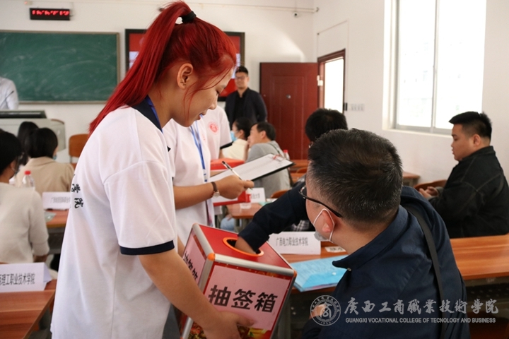 隨后,參賽隊伍到本校教學(xué)樓教室進(jìn)行領(lǐng)隊會議。會議中,裁判長詳細(xì)講解了大賽的規(guī)章制度和流程,解答參賽隊伍提出對本次大賽的疑惑以及問題。并且希望在比賽期間各院校的指導(dǎo)老師能夠提醒參賽選手能注意飲食和身體健康。裁判長宣布比賽規(guī)則、注意事項等,使參賽選手能夠更充分的了解這次比賽。宣布完畢后,各參賽隊伍以乒乓球抽號的方式有序進(jìn)行第二天比賽的入場順序抽簽。