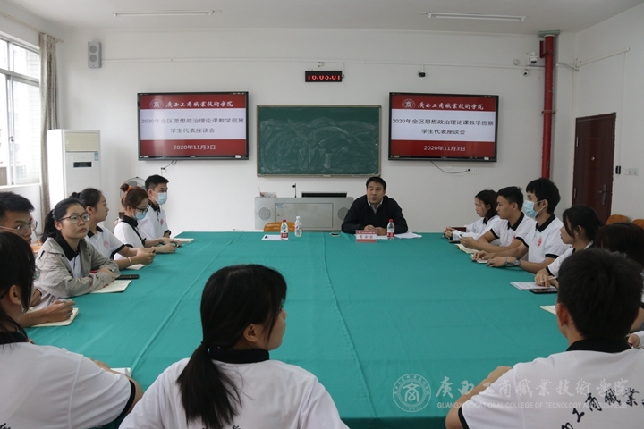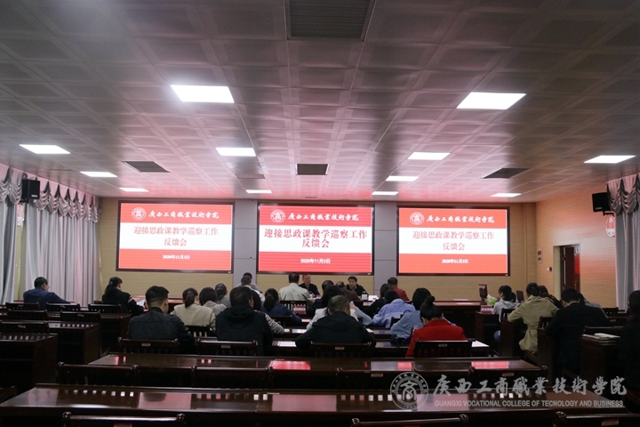 2020年11月3日下午,以廣西職業(yè)技術(shù)學院黨委書記李衛(wèi)東教授為組長的自治區(qū)教育廳巡察組對我院思想政治理論課教學工作開展巡察。本次巡察工作分為匯報會、聽課、座談會、查看資料、反饋會等五個環(huán)節(jié)。