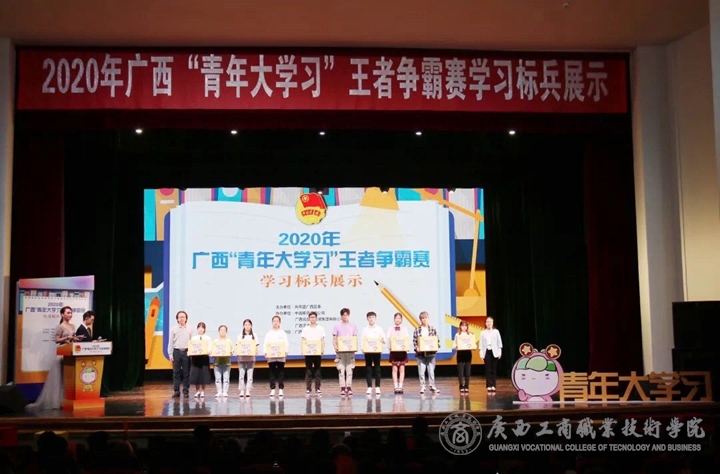 為充分展示學(xué)習(xí)標(biāo)兵的青春風(fēng)采,共青團(tuán)廣西區(qū)委定于11月2日早上,在廣西藝術(shù)學(xué)院南湖校區(qū)會(huì)演中心舉辦2020年廣西“青年大學(xué)習(xí)”王者爭霸賽學(xué)習(xí)標(biāo)兵展示活動(dòng),我院財(cái)管1909班羅媛、工商1908班陳躍丹兩位同學(xué)受邀參加活動(dòng)并上臺(tái)領(lǐng)獎(jiǎng)。