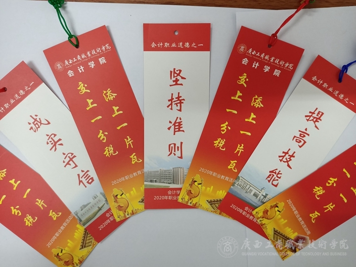大力弘揚勞動光榮、技能寶貴、創(chuàng)造偉大的時代風尚,進一步營造全社會關(guān)心支持職業(yè)教育的良好氛圍,2020年11月17日下午,會計學院開展以“交上一分稅,添上一片瓦”為主題,進行稅法知識宣傳和書簽發(fā)放,會計小技能(點鈔競賽、翻打傳票)體驗與比拼活動。