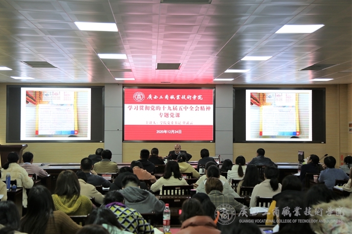 12月24日下午,學(xué)院在鵬飛校區(qū)教學(xué)樓2145會(huì)議室舉辦學(xué)習(xí)宣傳貫徹黨的十九屆五中全會(huì)精神專題黨課。本次黨課由學(xué)院黨委書記覃武云主講。學(xué)院中層領(lǐng)導(dǎo)干部代表、思政課教師代表、青年教師黨員及教職工入黨積極分子、發(fā)展對(duì)象參加學(xué)習(xí)。