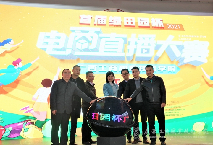 2021年1月5日上午,我院于中堯校區(qū)風(fēng)雨球場,舉行首屆綠田園杯廣西工商職業(yè)技術(shù)學(xué)院電商直播大賽開幕式暨校企合作簽約儀式。廣西工商職業(yè)技術(shù)學(xué)院副院長闕勇平,廣州綠田園農(nóng)業(yè)科技有限公司副董事長戴春燕、北部灣產(chǎn)權(quán)交易所集團(tuán)股份有限公司三農(nóng)事業(yè)部總經(jīng)理林宇、南寧市扶貧產(chǎn)品品牌開發(fā)協(xié)會(huì)秘書長歐凱、學(xué)院教務(wù)處處長蘇波出席本次活動(dòng)。大賽開幕式式由經(jīng)貿(mào)學(xué)院張煌強(qiáng)院長主持。本次活動(dòng)還有來自區(qū)內(nèi)外21家扶貧產(chǎn)品企業(yè)代表,經(jīng)貿(mào)學(xué)院的老師們、電商19、20級全體同學(xué)及電商協(xié)會(huì)工作人員參加。