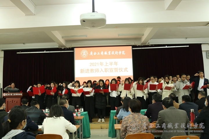 會上首先舉行了新進教師入職宣誓儀式。覃武云依次介紹我院新引進到崗的52位新教師,并對他們的到來表示熱烈歡迎。學院黨委組織部(學院人事處)部(處)、黨委教師工作部部長鄭華上臺引領新進教師作入職宣誓。