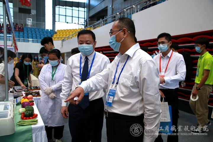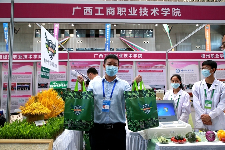 本屆展會(huì),我院的展位設(shè)計(jì)以“糧·商”特色為主,學(xué)院總體發(fā)展定位為“糧·商"同步推進(jìn),以建設(shè)高水平糧油食品專業(yè)群為龍頭,帶動(dòng)新工科、新商科專業(yè)集群體系建設(shè),積極探索構(gòu)建“多元參與、校企雙主體"的產(chǎn)教融合模式。展位上,糧油食品專業(yè)的老師帶領(lǐng)學(xué)生為嘉賓展示糧食農(nóng)藥殘毒監(jiān)測(cè)技術(shù)并講解,這是糧食副產(chǎn)物精深加工的科研成果;南寧市軍糧供應(yīng)站像嘉賓展示了校企合作研發(fā)的產(chǎn)品。學(xué)院黨委副書記蒙啟成帶領(lǐng)參展嘉賓來(lái)到我院展區(qū)查看現(xiàn)場(chǎng),為現(xiàn)場(chǎng)各領(lǐng)導(dǎo),嘉賓等一一介紹了我院的產(chǎn)品。師生的作品受到了上級(jí)領(lǐng)導(dǎo)及各國(guó)嘉賓的高度認(rèn)可。