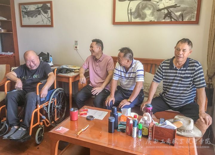 ?9月27日,學(xué)院工會(離退休辦公室)與學(xué)院離退休老黨員代表梁昆、黃偉學(xué)一行前往武鳴區(qū)里建太和自在城養(yǎng)老機(jī)構(gòu)走訪慰問身體欠佳、行動不便的退休老黨員張偉,并送黨史學(xué)習(xí)教育書籍上門,開展“送學(xué)上門”活動。