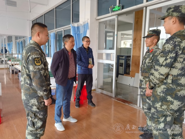 隨后,在安副院長的陪同下,謝副主任檢查了學(xué)生軍訓(xùn)情況,查看了教官們的住宿情況,與教官們進(jìn)行了親切交流,鼓勵(lì)教官克服困難,帶好學(xué)生,圓滿完成軍訓(xùn)工作。