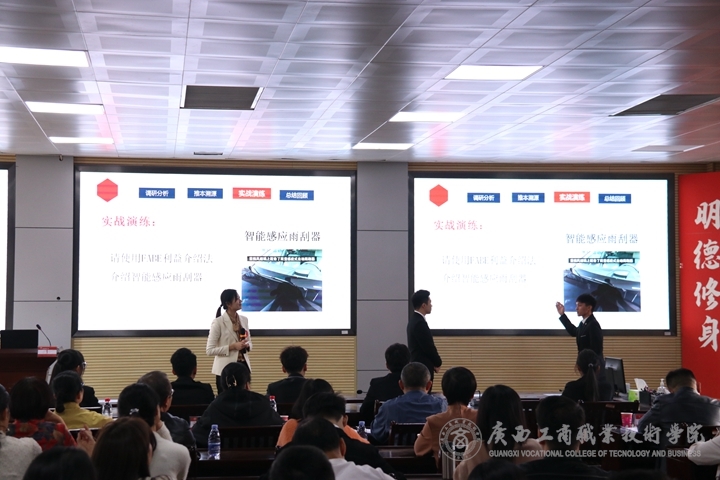 隨后,評(píng)委依據(jù)《廣西工商職業(yè)技術(shù)學(xué)院青年教師教學(xué)基本功競(jìng)賽評(píng)分表》進(jìn)行現(xiàn)場(chǎng)評(píng)分。評(píng)委代表羅小青教授對(duì)本次決賽進(jìn)行點(diǎn)評(píng)。她指出:一是青年教師遵守比賽規(guī)則;二是狀態(tài)好精神飽滿、有親和力,臺(tái)風(fēng)好;三是把新理念融入了課堂。?同時(shí)也提出了兩點(diǎn)建議:一是加強(qiáng)學(xué)習(xí)通平臺(tái)的使用,對(duì)接大賽的標(biāo)準(zhǔn);二是教案規(guī)范的加強(qiáng)。