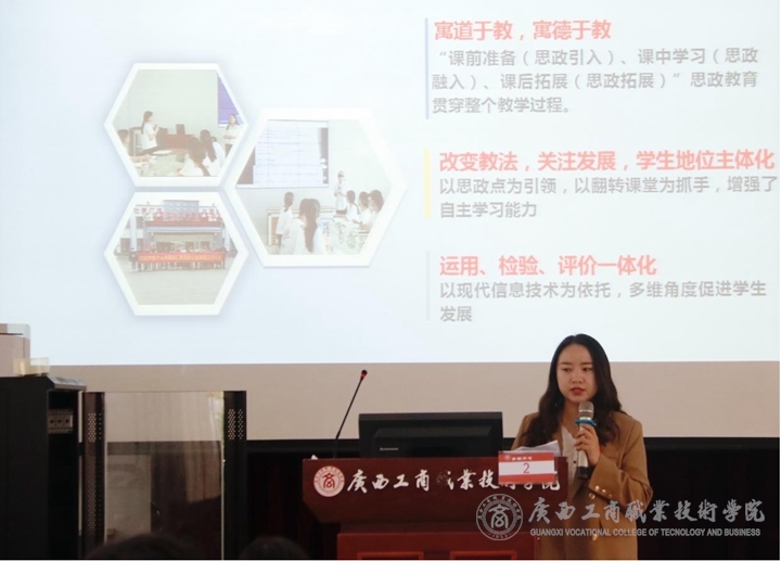 為進(jìn)一步推進(jìn)“課程思政”教學(xué)改革,充分發(fā)揮課堂教學(xué)育人主渠道、主陣地的作用,12月13日下午,我院2021年課程思政教學(xué)競(jìng)賽現(xiàn)場(chǎng)決賽在2145教室舉行。各二級(jí)學(xué)院教學(xué)管理人員代表、新進(jìn)教師全程觀摩比賽。