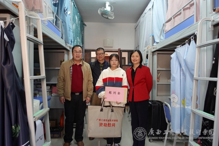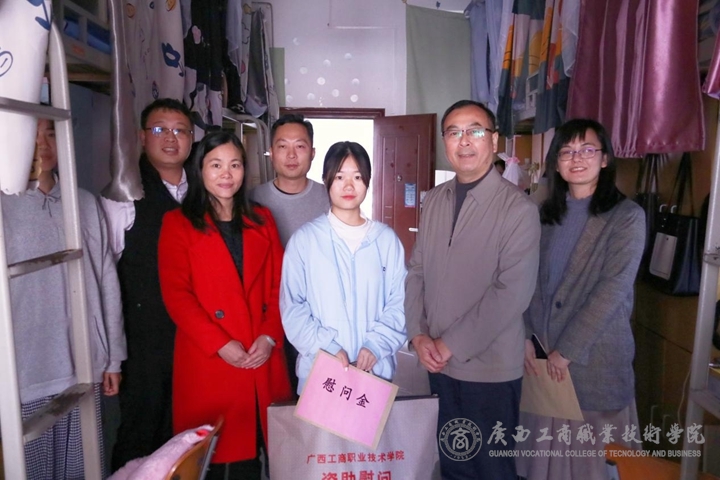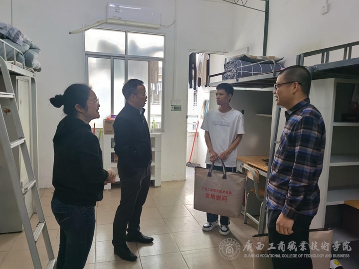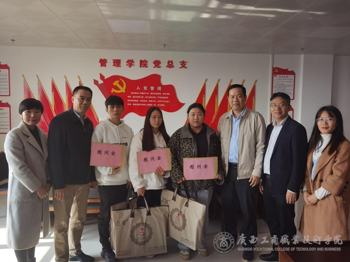 為貫徹落實國家有關家庭經濟困難高校學生資助政策,傳遞學院黨委對家庭經濟困難學生的關愛之情,2021年12月16日至24日,學院領導覃武云、李維、蒙啟成、安仲文、陳寧春、韋云鳳、闕勇平在黨委學工部部長林雯、副部長張居設、院團委書記王娟及各二級學院的主要負責人陪同下,率隊赴我院鵬飛、中堯、武鳴三個校區(qū),分別深入廣策2101班等7個班級走訪慰問了黃彩粉等16名家庭經濟困難學生。