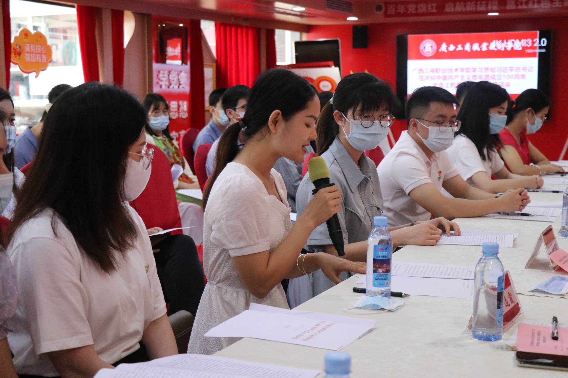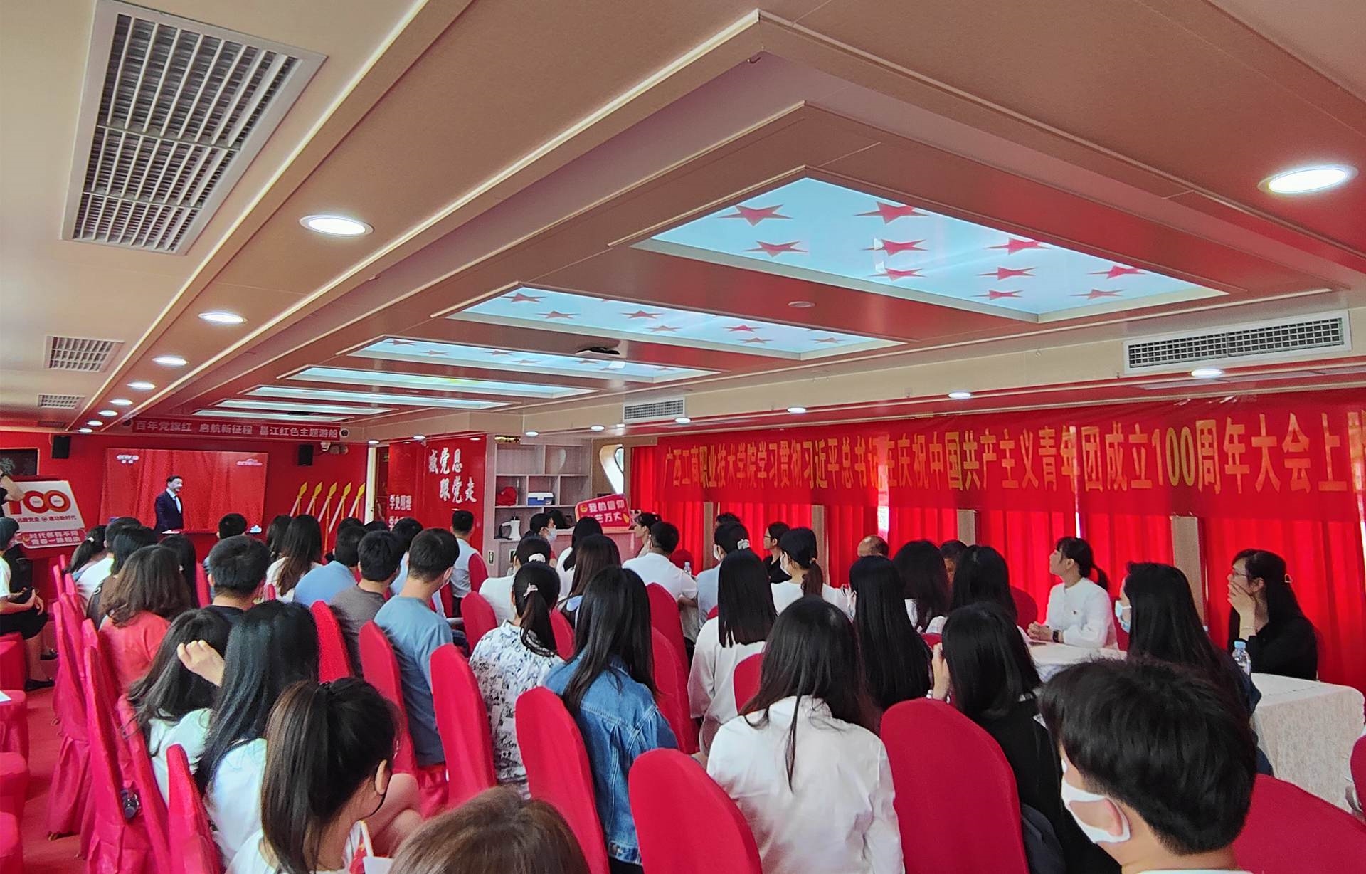 5月20日下午,我院在南寧市邕江紅色主題游船召開學(xué)習(xí)貫徹習(xí)近平總書記在慶祝中國(guó)共產(chǎn)主義青年團(tuán)成立100周年大會(huì)上的重要講話精神座談會(huì),深入學(xué)習(xí)貫徹習(xí)近平總書記重要講話精神。學(xué)院黨委書記覃武云、學(xué)院副院長(zhǎng)安仲文和相關(guān)部門領(lǐng)導(dǎo)、學(xué)院全體教師團(tuán)干部、青年教工團(tuán)支部全體青年教師、部分學(xué)生團(tuán)員代表參加座談會(huì)。