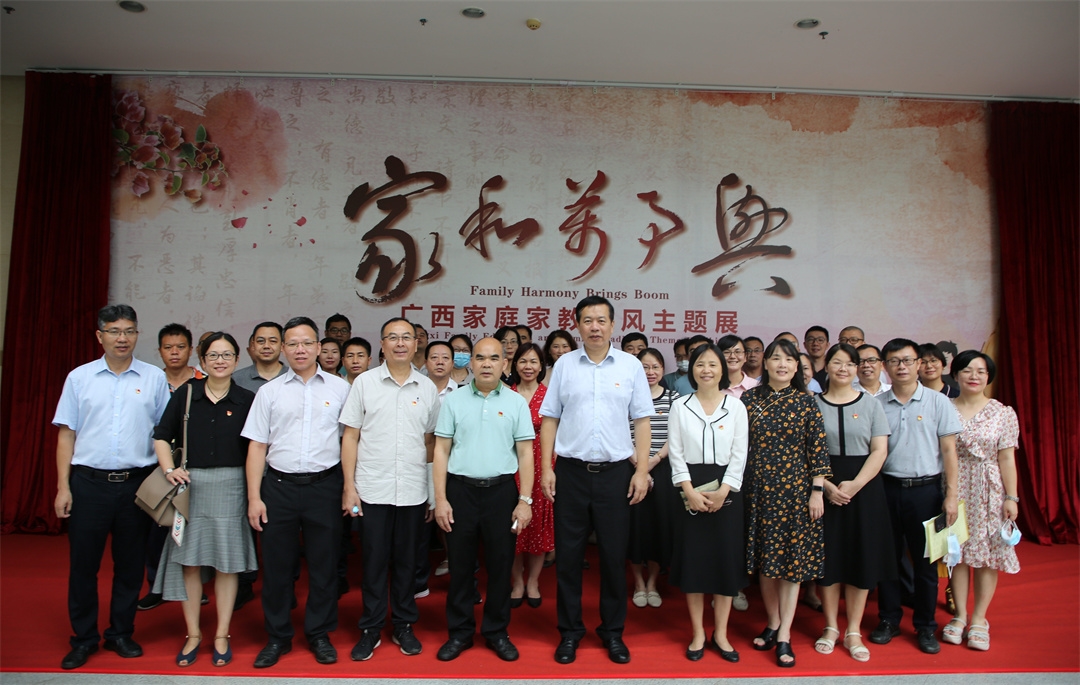 《家和萬事興——廣西家庭家教家風(fēng)主題展》以“風(fēng)清氣正”為主題,分“紅色家風(fēng)”“先賢家教”“清廉家庭”三大部分,通過圖片、繪畫、實(shí)物、文獻(xiàn)等多種形式,集中展示了黨的十八大以來,深入貫徹落實(shí)習(xí)近平總書記的重要指示精神,在家庭家教家風(fēng)建設(shè)上所取得的成效。參觀過程中,同志們認(rèn)真聽講解員介紹,學(xué)習(xí)和了解傳統(tǒng)優(yōu)秀家風(fēng)家訓(xùn)、與優(yōu)良家風(fēng)有關(guān)的人物、革命先輩的家風(fēng)文化以及當(dāng)代杰出代表的家風(fēng)故事等,深刻感受優(yōu)良家風(fēng)文化的熏陶和洗禮。