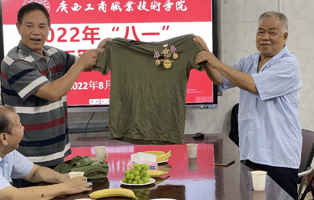 與會期間,學(xué)院退役軍人代表們暢所欲言,回顧了他們各自的軍旅歲月,暢談了他們在部隊的生活以及退役后在單位的奮斗經(jīng)歷和感受。在部隊服役17年的73歲閉慶煊老師說“我時刻聽從黨的召喚,愛黨、愛國家、愛學(xué)院的初心永不變”。參加過援老抗美、對越自衛(wèi)反擊戰(zhàn)等多次戰(zhàn)役的71歲黃偉學(xué)老師在現(xiàn)場吟誦了自己編寫的一首詩“十七八歲到軍營,援老抗美振叢林,國防施工鉆叢林,自衛(wèi)反擊呈英豪”。代表們分別對學(xué)院黨委的關(guān)心關(guān)愛表達(dá)了感謝,并且表示雖然退役了,但他們?nèi)匀槐3种娙吮旧?,與學(xué)院一起,以實干實績迎接黨的二十大勝利召開。