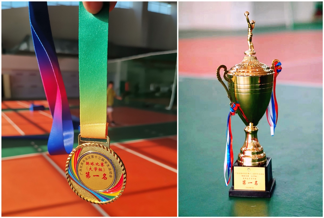 廣西壯族自治區(qū)學(xué)生運(yùn)動(dòng)會(huì)是區(qū)內(nèi)學(xué)生運(yùn)動(dòng)會(huì)中規(guī)格最高、規(guī)模最大、水平最高的運(yùn)動(dòng)會(huì)。2022年7月15日,廣西第十三屆學(xué)生運(yùn)動(dòng)會(huì)排球比賽在廣西師范大學(xué)雁山校區(qū)如期舉行。我院鄧淇元、陳凱、羅世健幾位老師擔(dān)任教練帶隊(duì)參加高職高專男子組比賽,經(jīng)過過關(guān)斬將,在7月23日的決賽中,男排隊(duì)員充分展示了頑強(qiáng)拼搏的廣商院精神,在先失一局的情況下,迅速調(diào)整比賽狀態(tài)進(jìn)行拼殺,最終戰(zhàn)勝對(duì)手,獲得冠軍。這是我院排球隊(duì)第一個(gè)全區(qū)比賽冠軍,也是我院三大球集體比賽的第一個(gè)廣西冠軍。